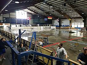 Wie man auf den Bildern unten sieht ist die Fläche noch nicht mal vollständig getrocknet, trotzdem haben es rund 30 unermüdliche Helfer in kürzester Zeit geschafft die Bande, Netze, Zeitnehmer-Box, Spielerbänke, etc. abzubauen und das Icehouse einer großen Lagerhalle ähneln zu lassen. Der besondere Dank gilt dabei neben Fritz Haaf (dem Vorstand des ECE) vor allem der 1. Mannschaft der Eisbären sowie den Rhein-Neckar Gladiators. Denn die Gladiators haben sich dabei hauptsächlich dem Bandenabbau angenommen, damit Sie diese im Gegenzug unentgeltlich übernehmen und auf Ihrem eigenen Hockey-Platz in Ketsch wieder aufbauen können. Da ursprünglich als einzige Alternative die Verwertung der einzelnen Banden-Bestandteile im Raum stand, haben wir mit dieser Option für alle die bessere Lösung gefunden! Denn so wie die SAP-Arena den ECE mit der Bande unterstützt hat, konnte dies nun der ECE für die Gladiators tun.