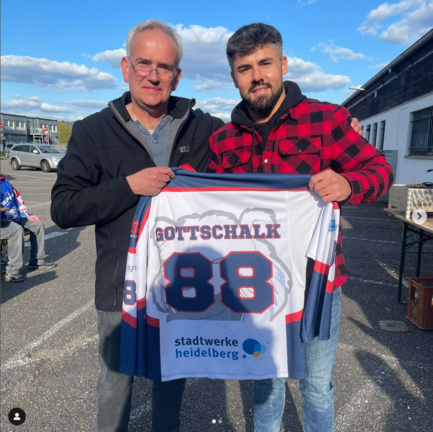 Am vergangenen Sonntag hatte die Spieler und der Vorstand der Seniorenmannschaft der Eisbären Eppelheim bei einem gemeinsamen Abschlussfest sich bei den Zuschauern und Unterstützern der Eisbären der abgelaufenen Saison zu bedanken. Nach einer offenen Eiszeit, einem kühlen Bier und leckeren Bratwürsten lag der Fokus allerdings erstmal bei den Spielerpaten und so konnten sich unsere #88 Roman Gottschalk und #80 Daniel Wilhelm bei ihren Unterstützern mit einem unterschriebenen Trikot der letzten Saison bedanken. Hinweis: Spielerpaten, die nicht anwesend waren, bekommen Ihr Auswärtstrikot zugesandt.